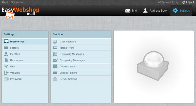 Vous pouvez modifier l'apparence de l'interface du courrier web à votre goût dans la même page dans la section Interface skin. Lorsque vous utilisez le courrier web avec votre tablette ou smartphone, vous avez automatiquement une vue qui est optimisée pour votre appareil.