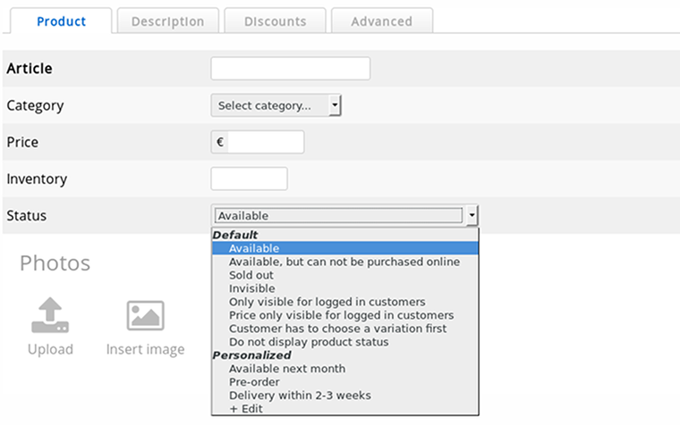 Les clients Business peuvent désormais ajouter des statuts personnalisés de produit en haut des statuts de produit existants. Cette mise à jour vous procure la liberté de fixer la disponibilité du produit comme vous le souhaitez.